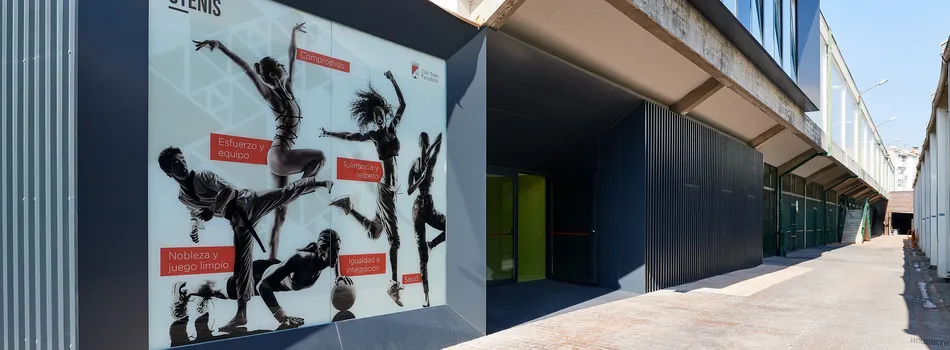 Entrada al club por la calle Mutilva